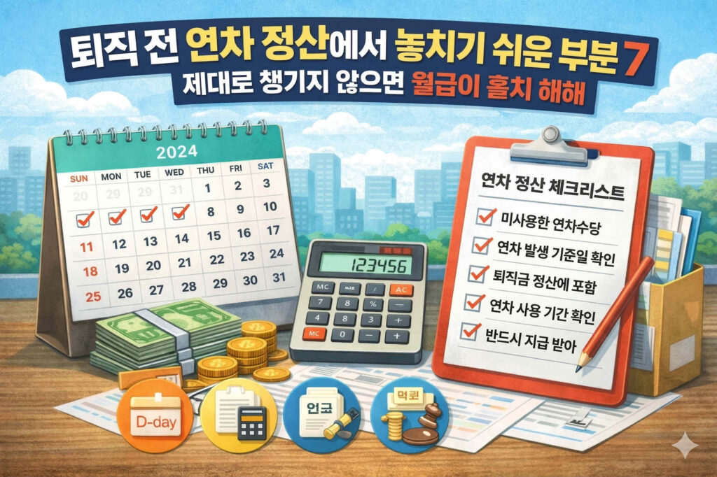 퇴직 전 연차 정산에서 놓치기 쉬운 부분은 대부분 계산 기준과 절차 확인 부족에서 발생합니다.